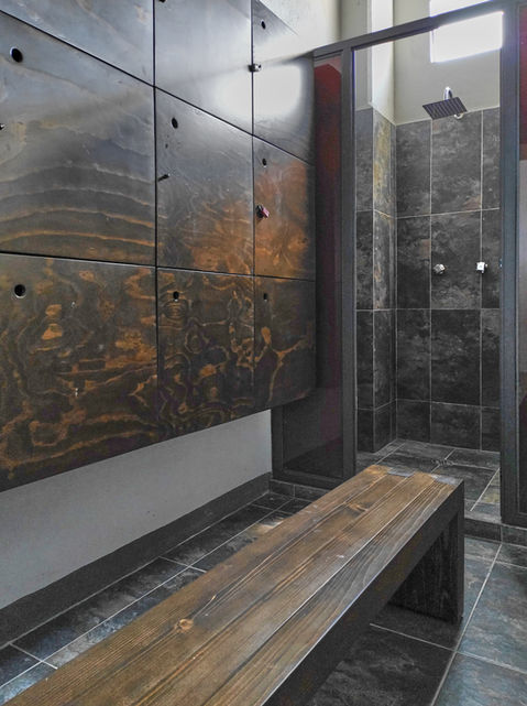 Espacio no habitacional diseñado para ser funcional, cómodo y bien iluminado, logrando amplitud y elegancia mediante el uso estratégico de espejos en muros y columnas. Se colocó un piso adecuado para su uso, manteniendo una apariencia cálida y moderna, con especial atención a mantener bajos costos de realización. En los baños se logró una sensación de calidez gracias al uso de madera en lockers y repisas, creando un ambiente agradable y acogedor incluso en un gimnasio.